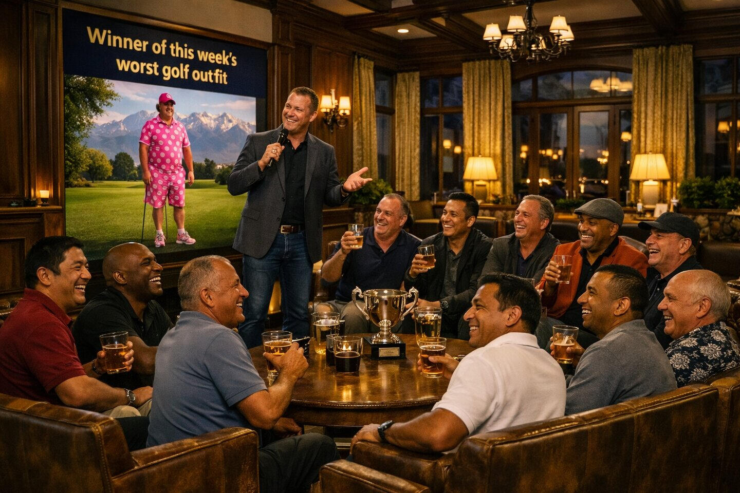 Your last night ends in the clubhouse with your host running a tongue in cheek awards ceremony. Prizes for everyone, some serious, mostly fun and games. Make sure you have a thick skin!